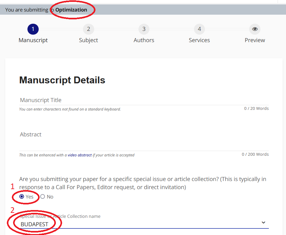 3. Answer "Yes" for the question "Are you submitting your paper for a specific special issue or article collection?"!